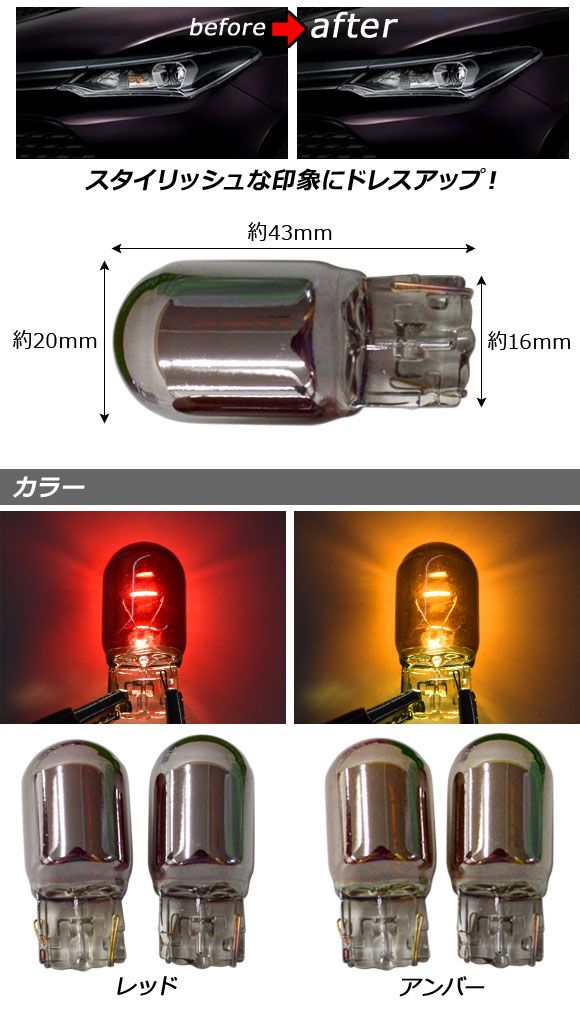 ステルスバルブ ハロゲン T20 7440 シングル球 12V 21W ウェッジ 選べる2カラー 入数:2個 AP-LL015 カラー: レッド アンバー
