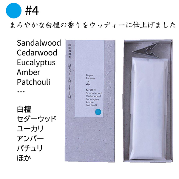 WASHI INCENSE #4 白檀の香り‐和紙のお香 お香 薫寿堂 専用クリップ付 部屋焚き 室内香 アロマ 和紙香 紙のお香 白檀 セダーウッド ユーカリ アンバー パチュリ