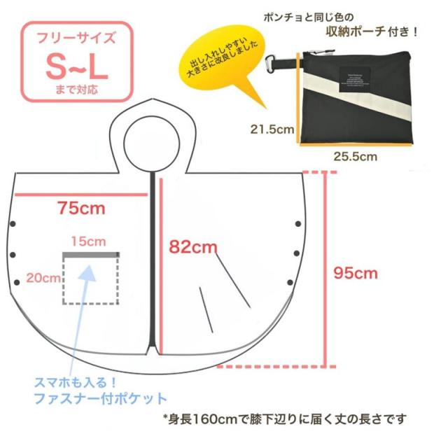 ・S~L対応フリーサイズのレインポンチョです