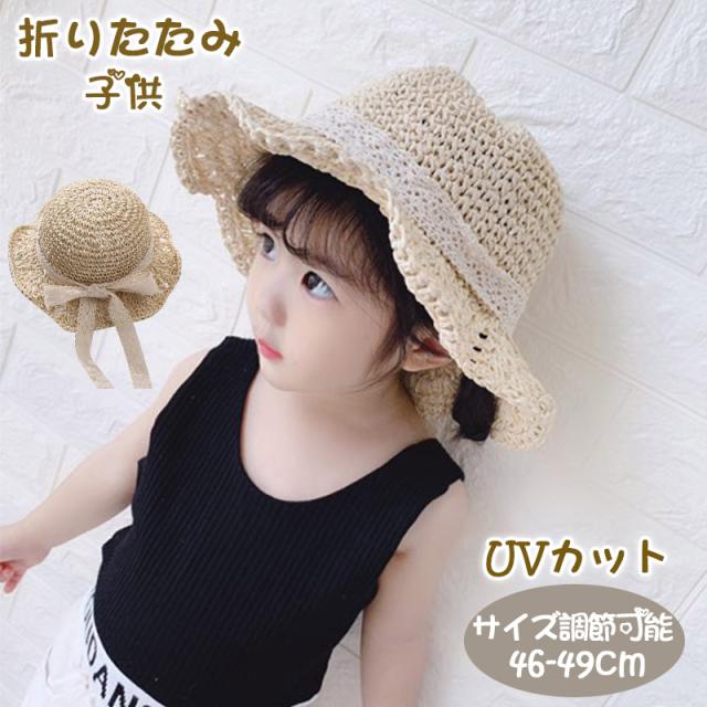 麦わら帽子 キッズ ベビー 折りたたみ ハット 帽子 日よけ 日焼け対策 紫外線対策 リンクコーデ 夏 子供帽子 ベビー帽子 赤ち 母の日