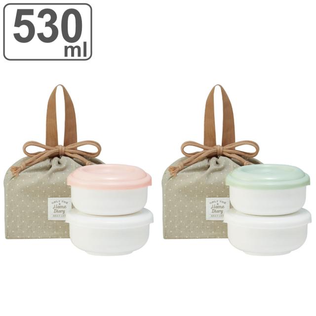 お弁当箱 巾着付お茶碗型ランチボックス 530ml ( 弁当箱 ランチボックス 2段 レンジ対応 食洗機対応 大人 女子 巾着袋付き レンジOK 食洗機OK 二段 弁当 お弁当 入れ子式 女性 )