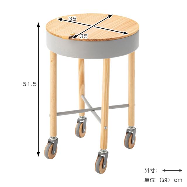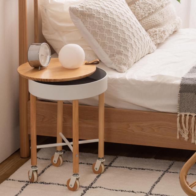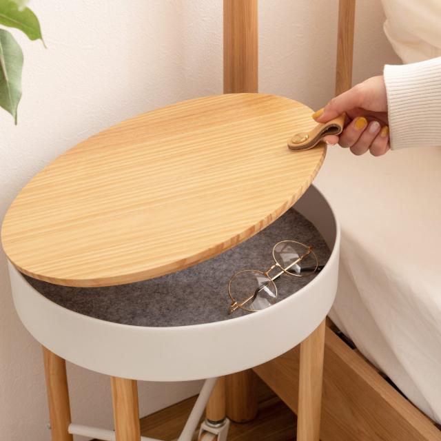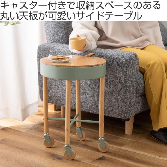 サイドテーブル 高さ51.5cm 木目 キャスター付き ( ナイトテーブル サブテーブル 丸 収納 天然木 天板下 シンプル ナチュラル 北欧風 おしゃれ グリーン グレー ホワイト )