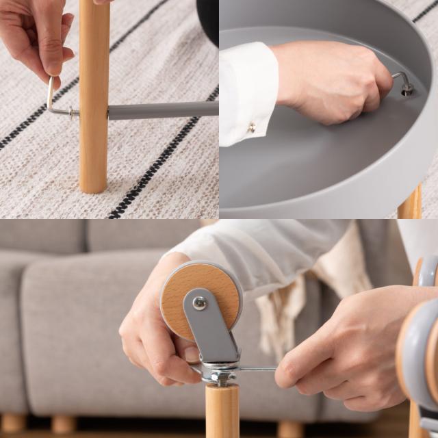 キャスター付きなので、お好みの場所に自由に移動ができるので便利です。キャスターの側面部分には天然木を使用していて細部のデザインにもこだわっています。