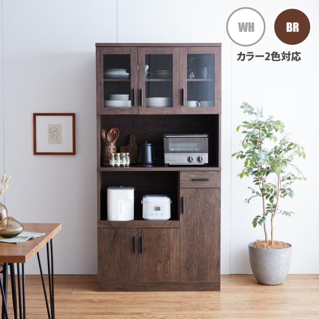 AAM 食器棚 幅 80cm ダイニングボード ブラウン ホワイト カウンター レンジ台 組み立て商品 キッチン収納 カップボード キッチンボード 作業台 間仕切りカウンター