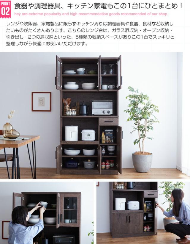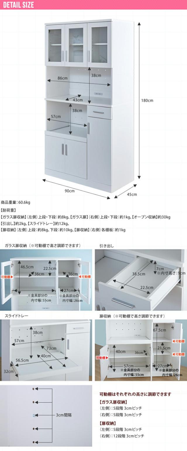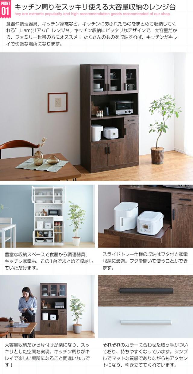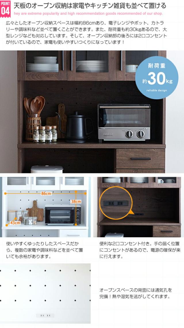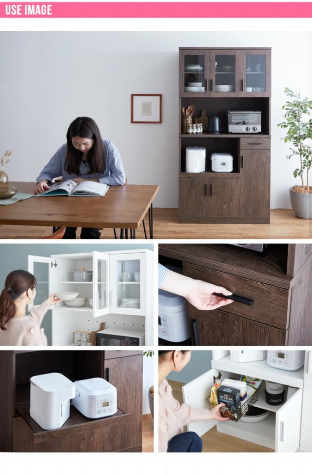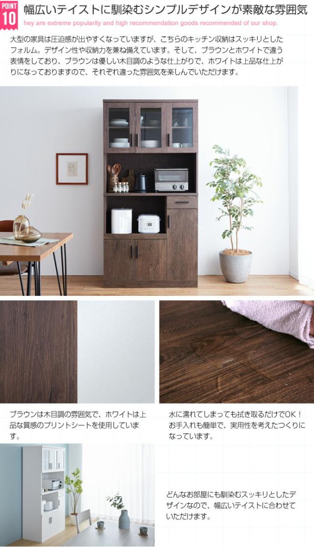 無地ホワイト 大容量収納 食器棚 レンジ台 家電ラック キッチンボード スタイリッシュ