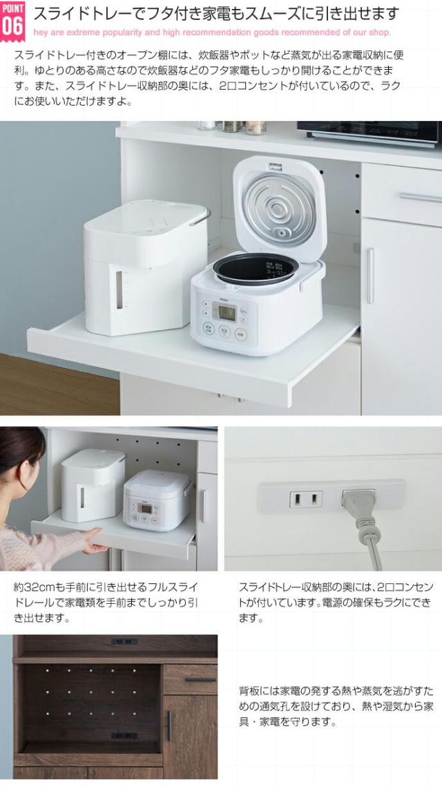 32cmと大きく出し入れするスライド棚は、炊飯器やコーヒーメーカーなど蒸気の出る家電ラックに便利。
