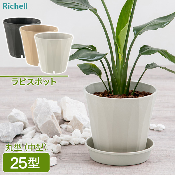リッチェル ラピス ポット 25型 選べるカラー | 鉢 植木鉢 ポット プランター 丸 中型 おしゃれ プランター 園芸鉢 ガーデニング ストーン調 8号 観葉植物 割れにくい 鉢植え プレート25型