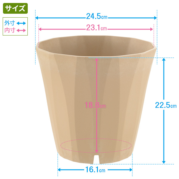 サイズ(約):直径24.5×高さ22.5cm(下部 / 直径16.1cm)