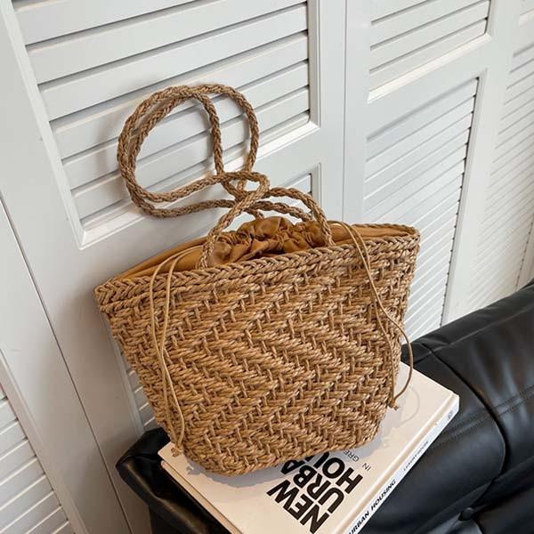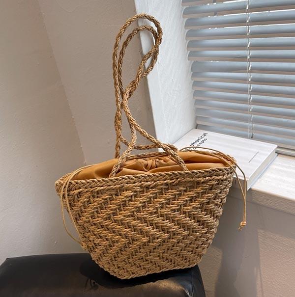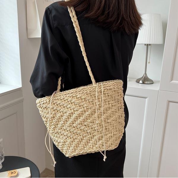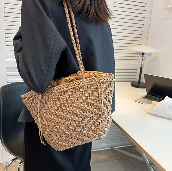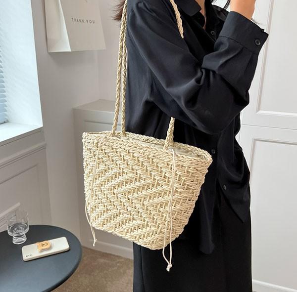 【レビュー投稿で+5%還元】かごバッグ ショルダー 巾着 レディース 大きめ 大人可愛い 春夏 カバン バッグ ストローバッグ ポケット 軽い 大容量 おしゃれ ナチュラル 旅行 リゾート ビーチ ママバッグ 日常 軽量 ベージュ オフホワイト ec207t2t2q3