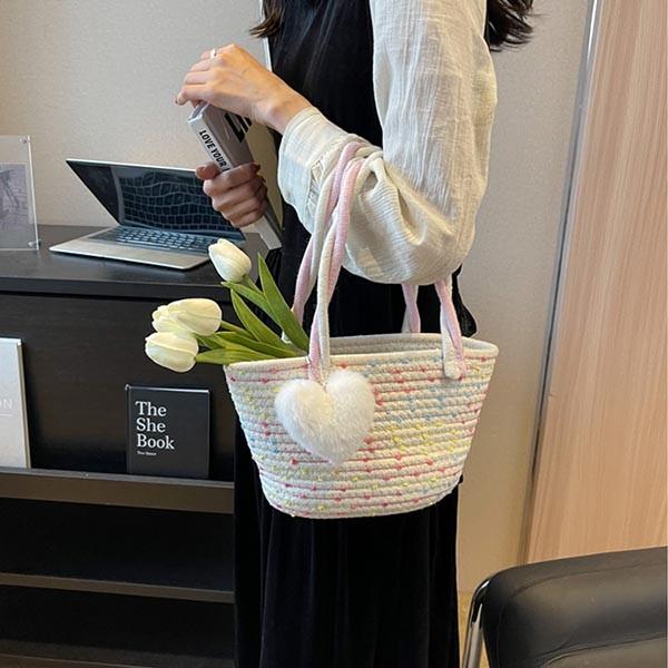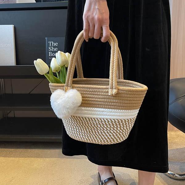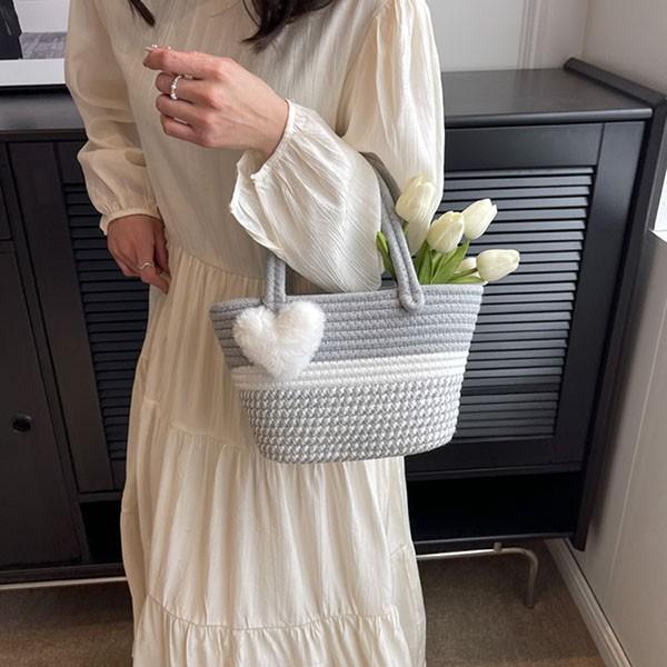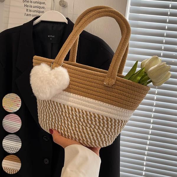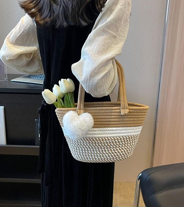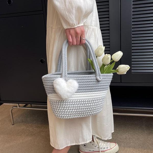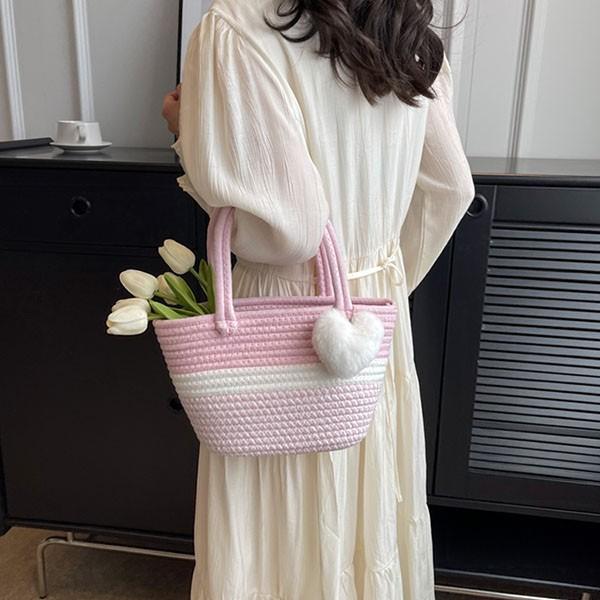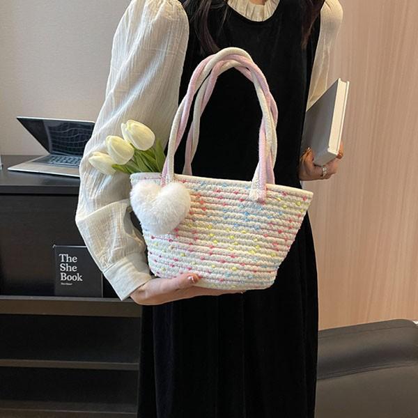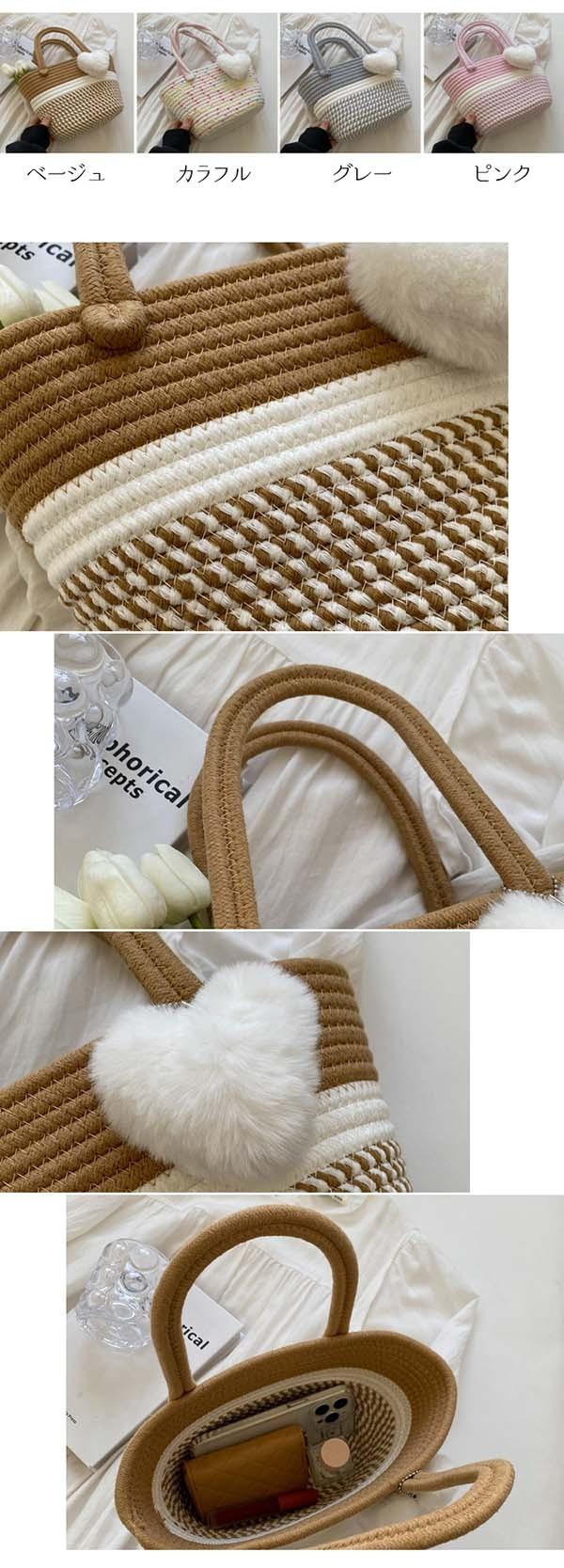 【レビュー投稿で+5%還元】かごバッグ ハンドバッグ レディース チャーム 大人可愛い 春夏 カバン バッグ ストローバッグ ポケット 軽い 大容量 おしゃれ ナチュラル 旅行 リゾート ビーチ ママバッグ 日常 軽量 灰色 ベージュ ピンク ec205t2t2q3