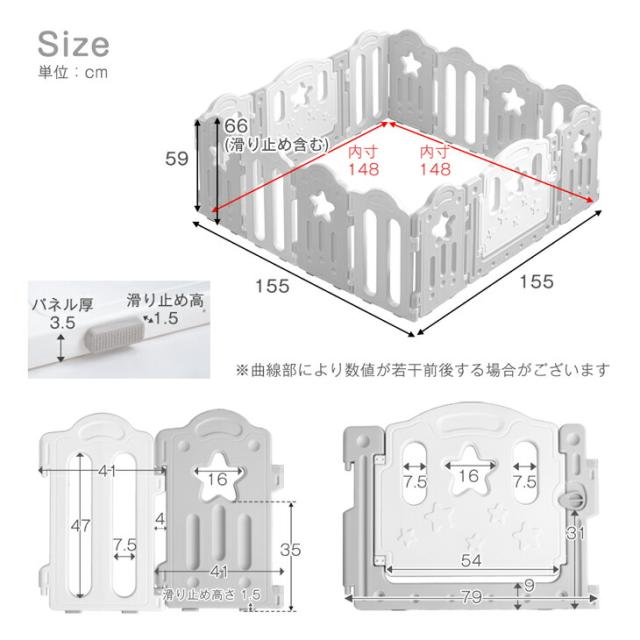 2つ 扉付き ベビーサークル ハイタイプ 12枚セット 簡単組み立て プラスチック ドア 扉 ベビー サークル プレイペン 赤ちゃん ベビーゲート シンプル グレー ベージュ 白 ホワイト