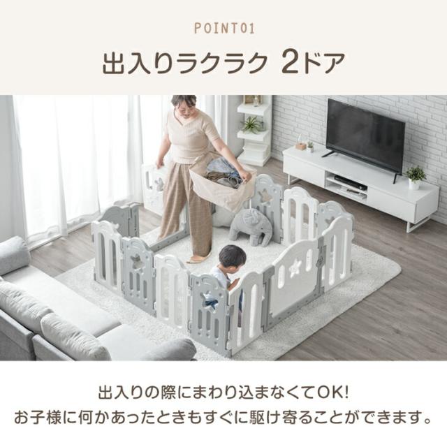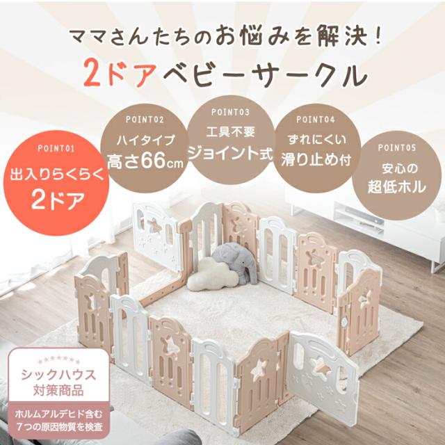 ベビーサークル 扉付き 2ドア キッズサークル ハイタイプ 簡単組立 ジョイント式 ドア 扉 ペットケージ ベビー サークル 大きい プレイペン 大型 おしゃれ かわいい 北欧 柵 ベビーゲート 出入り楽々 現役ママが考えた