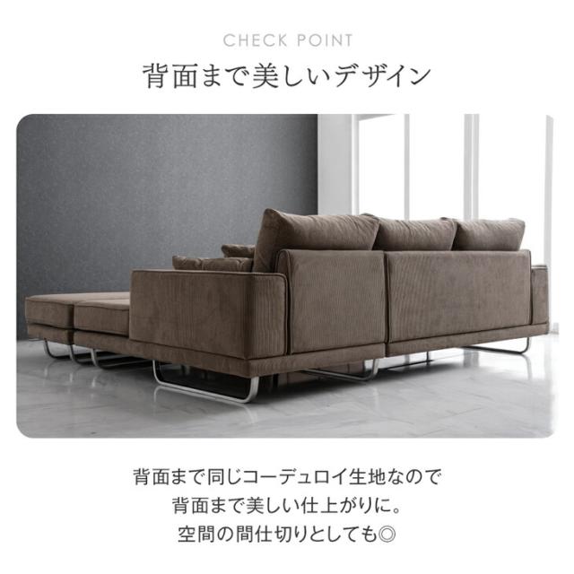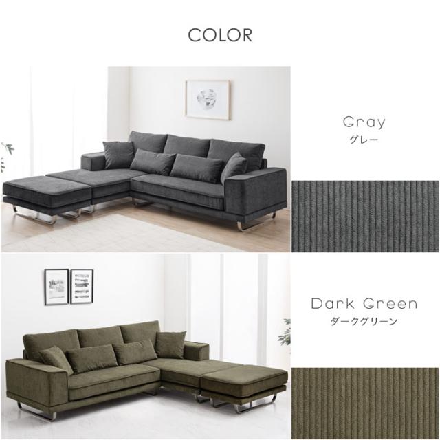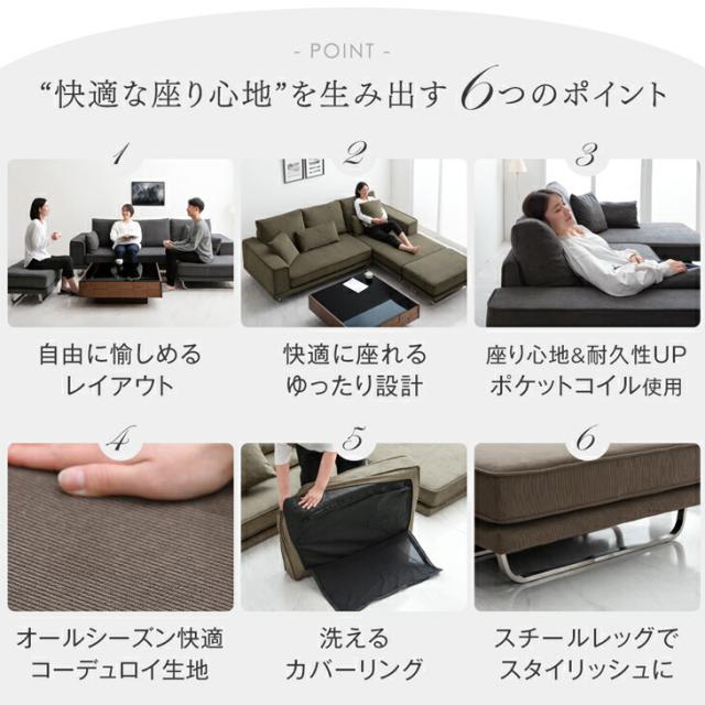 【本日P5%還元】 ソファ カバーリング 洗える コーデュロイ コーナーソファ ポケットコイル 3人掛け オットマン クッション付き カウチソファ ソファー コーナーソファー 3P 3人掛【超大型商品】