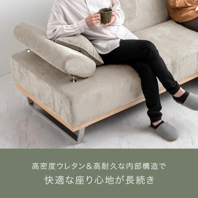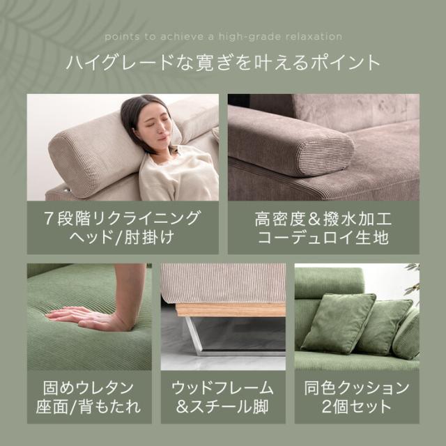 2Pソファ ヘッド 肘掛け リクライニング コーデュロイ シンプルモダン 2人掛け ソファ ソファー ファブリック 布 天然木 スチール 脚 ブラウン ベージュ グリーン おしゃれ 北欧 モダン