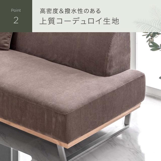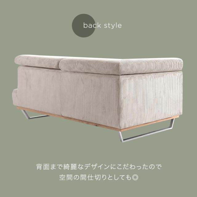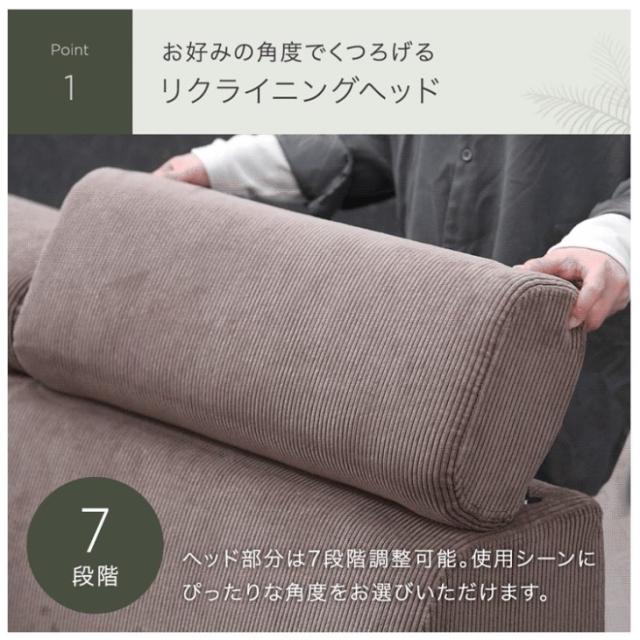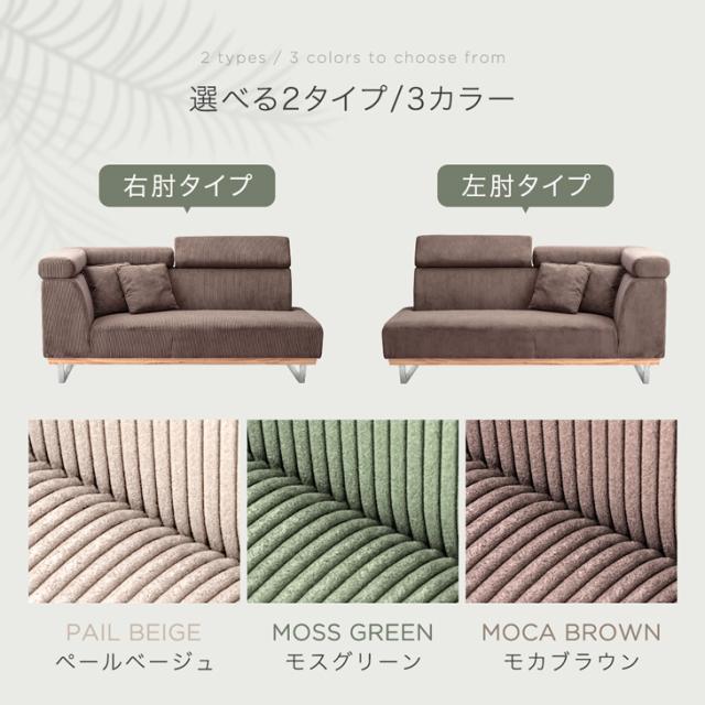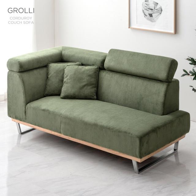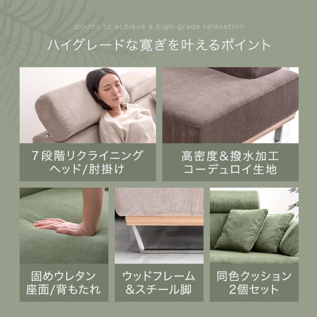 カウチソファ ヘッド リクライニング コーデュロイ シンプルモダン 2人掛け カウチ ソファ ソファー カウチソファー 布 天然木 スチール 脚 ブラウン ベージュ グリーン おしゃれ モダン