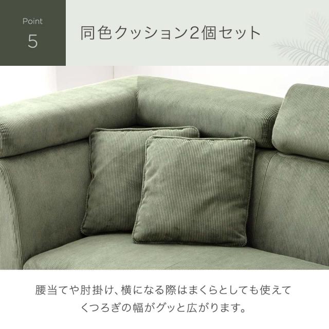 コーデュロイ ヘッド リクライニング クッション 2個付き ソファ ソファー カウチソファ リクライニングソファ 2P 2人掛 布地 モダン おしゃれ ブラウン グリーン ベージュ 【超大型】【後払/時間指定NG】