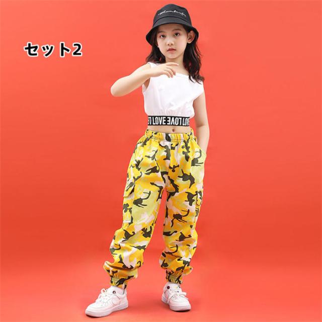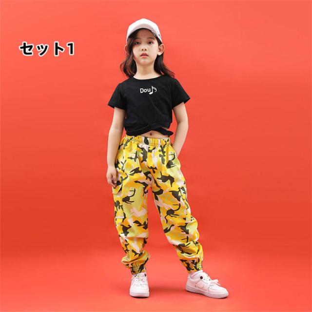 子供服 女の子 ヒップホップ ダンスウェア 踊り ダンス服 セットアップ ダンス着 ステージ ストリートダンス ファッション トップス Tシャツ
