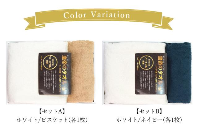 スーピマ綿を使用した贅沢なバスタオル2枚組のギフトセットです。
