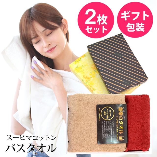 ギフト バスタオル スーピマ タオル 2枚セット 箱入り 包装紙付き 5色 スーピマコットン 100% 厚手 高品質 【沖縄県除き送料無料】 高級ホテル仕様 スーピマバスタオル セット 吸水 まとめ買い 綿100% 極厚 プレミアム 世界3大コットン プレゼント包装対応 agesugi_snk