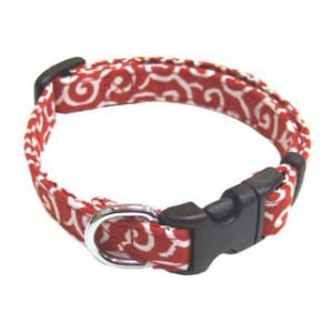 ◆肌触りがいいコットン生地を使用した、人気のカラクサ模様のワンタッチ首輪。