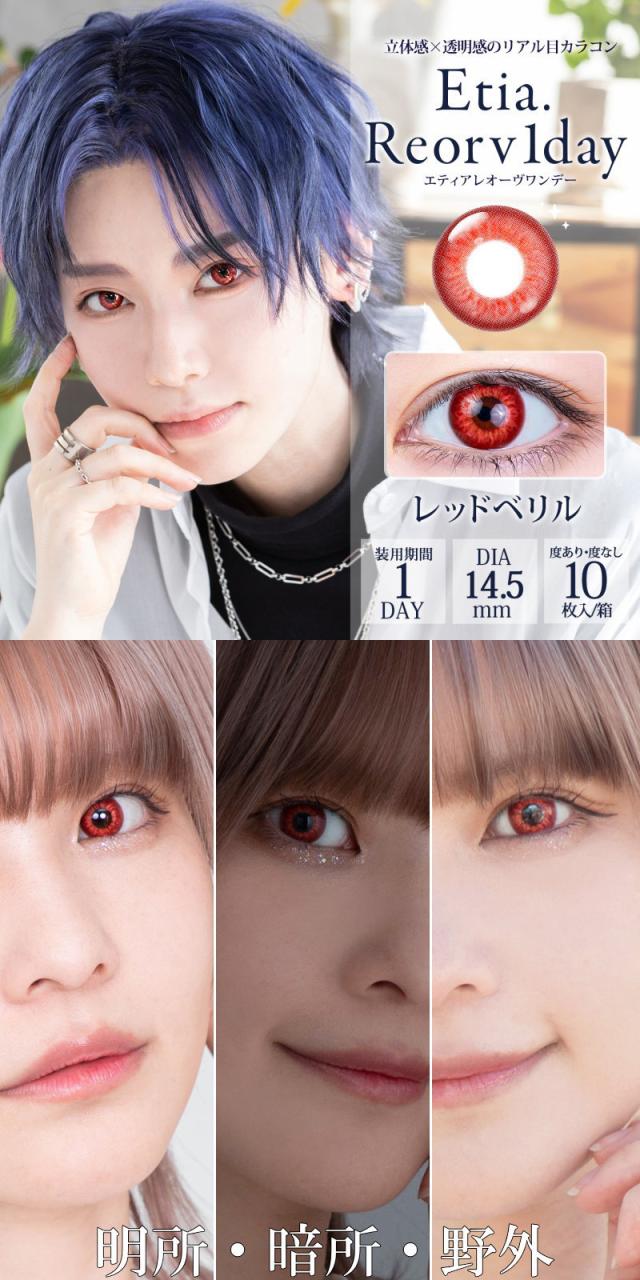 カラコン エティア レオーヴ ワンデー 1箱10枚 コスプレ 度あり 度なし Etia.Reorv 1day 1日使い捨て 高発色 4トーン リアル レイヤー SNS コミケ 推しカラー 赤 青 紫 緑 黄色