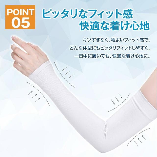 商品特徴:UVカット/吸汗速乾/通気快適/高弾性/腕にフィット/ひんやり