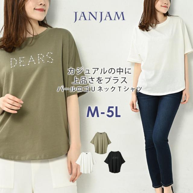 大きいサイズ レディース ドルマンTシャツ パールロゴ メール便対応 半袖 ビーズ Uネック トップス M/LL/3L/4L/5L ゆったりサイズ ぽっちゃり女子 プラスサイズ