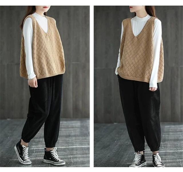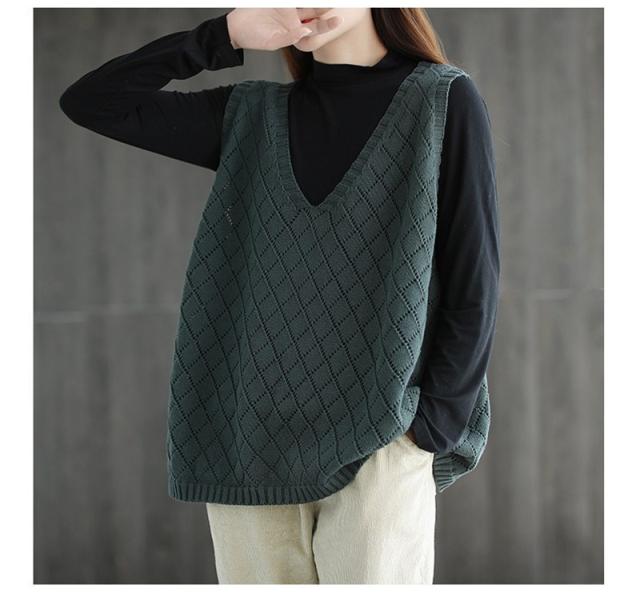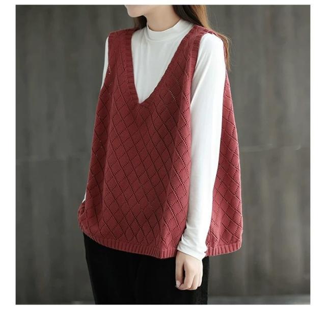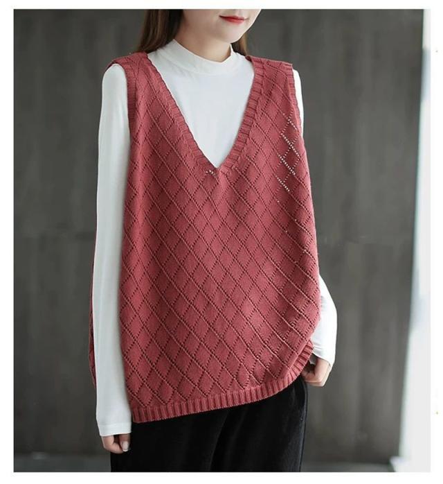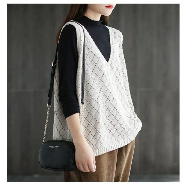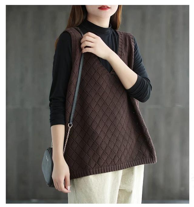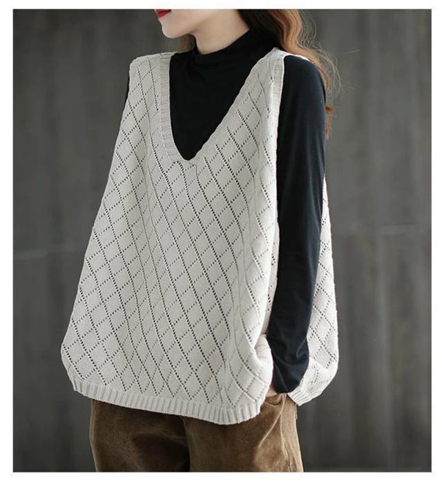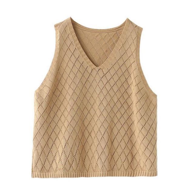 ニット ベスト レディース ジレ 春夏 透かし編み 薄手 サマーベスト Vネック ノースリーブ 透け感 重ね着 タンクトップ トッ