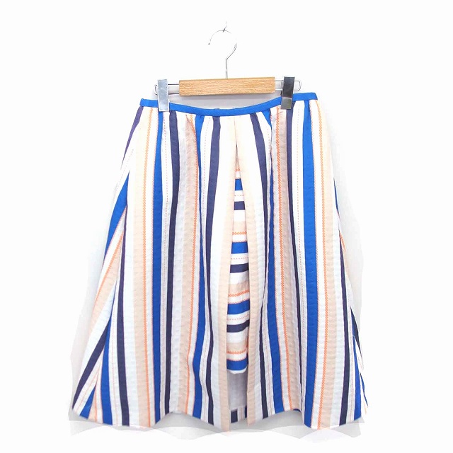 【中古】チェスティ Chesty フレア スカート ストライプ ロング 薄手 1 ホワイト ブルー 白 青 /TT8 レディース