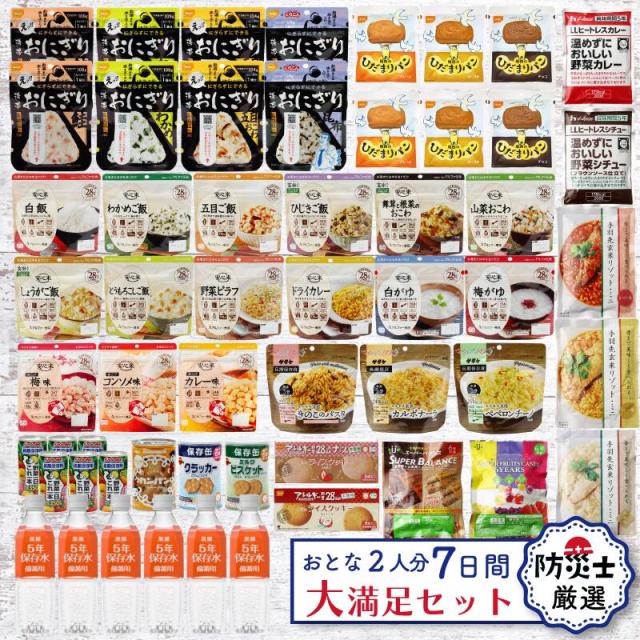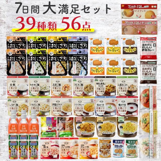 【食器セット付】非常食セット 非常食 保存食 防災食 アルファ米 パン おかず お菓子 水 野菜ジュース 保存食セット 7日間 2人用 39種 54品 大満足セット 防災 防災グッズ 長期保存 1人 7日分 2人 3日分 4人用 5年 5年保存