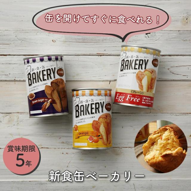 新食缶ベーカリー プレーン 黒糖 オレンジ 防災グッズ 防災用品 非常食 保存食 長期保存 備蓄 賞味期限 5年 パン パンの缶詰め 卵不使用 エッグフリー 5年保存 アウトドア キャンプ 登山 海外旅行
