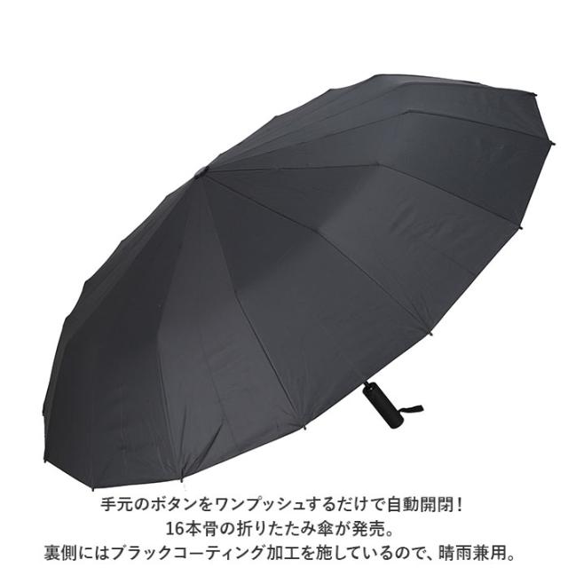 | 商品説明 | ・手元のボタンをワンプッシュするだけで自動開閉!16本骨の折りたたみ傘が発売。 【自動開閉式】 ・傘を開く時は、ハンドルをしっかりと握って手元のボタンを押すだけ!シャフトが伸びて傘が自動で開く自動開閉傘。 【丈夫なつくり】 ・16本骨でしっかりとしたつくり。傘生地を広げれば直径約107cmのビッグサイズ。荷物や洋服の裾が濡れにくく、身体の大きな男性でも使いやすい。 【握りやすいハンドル】 ・手元ハンドルはマットな手触りで自動開閉時にしっかりと握れて滑らない大きめハンドル! 【留めバンド】 ・傘生地をまとめるバンドはしっかり留められるスナップボタン式。 【晴雨兼用】 ・傘生地裏側にはブラックコーティング加工を施し、雨の日だけでなく日射しの強い日にも使える晴雨兼用傘。 【選べるカラー】 ・ベーシックカラーで男性にも使いやすいユニセックス仕様。 |