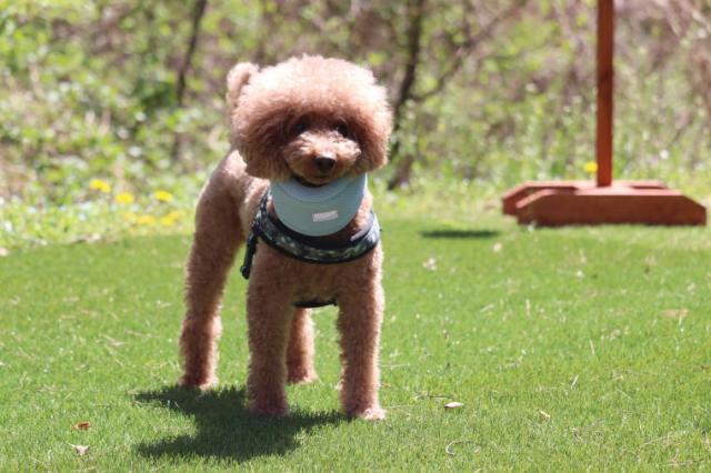 写真のトイプードルのチョコ(7キロ)はSサイズ(3.6キロのサンペイもSサイズ)。
