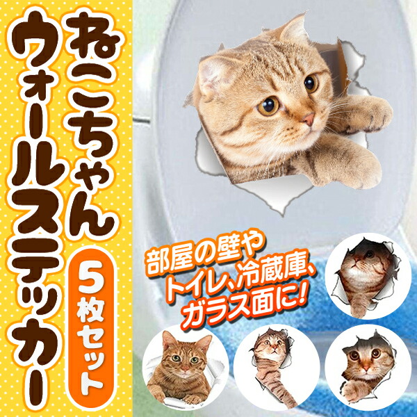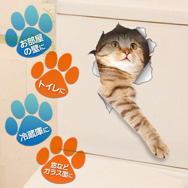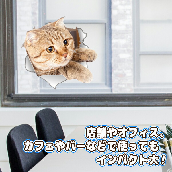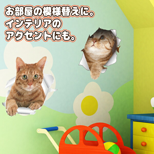 送料無料 !( メール便 ) 猫 ステッカー 【5種類セット】顔を出したねこちゃんが可愛い リアルな猫ウォールステッカー 5枚セット【 猫 ネコ ねこ グッズ 壁 シール 特大 立体 3D リビング ポイント消化 1000円 以下 の商品】 送料込 1M◇ とびだす猫DL
