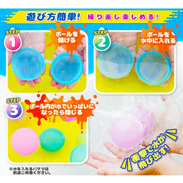 水を入れて投げても割れない! 繰り返し遊べる新感覚の水バクダン! |