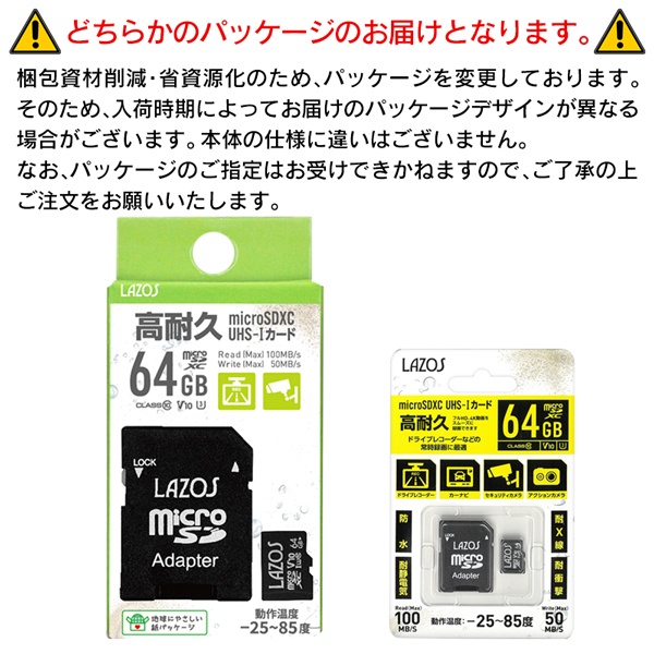 | 高耐久 microSDXCカード 64GB CLASS10相当 |