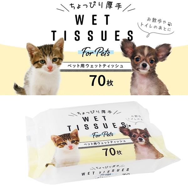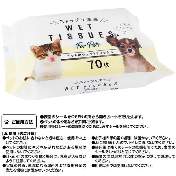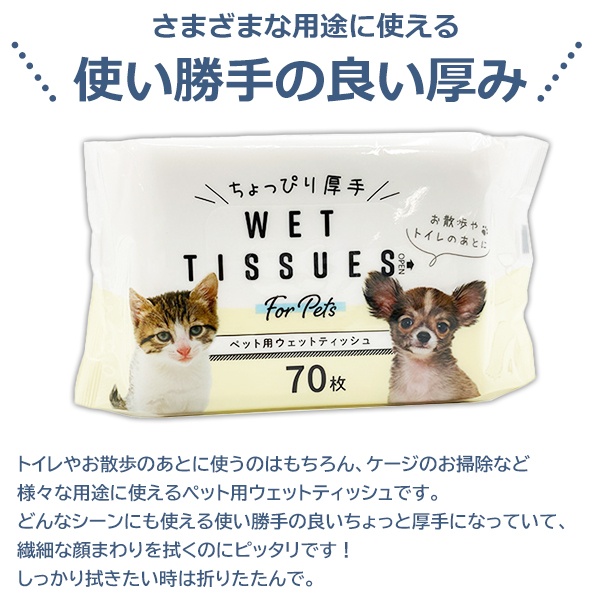| ちょっと厚手で使いやすい! ペット用ウェットティッシュ 70枚入 |