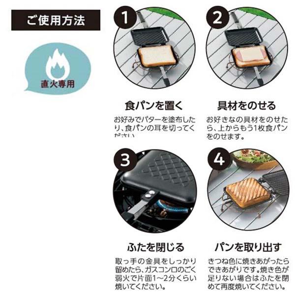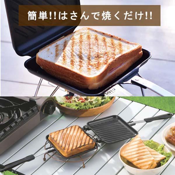 直火式ホットサンドメーカー 1枚焼き 耳まで焼ける 着脱式 お手入れ簡単 アウトドア特集【 アルミ製 ホットサンドパン 調理器具 トースター フライパン 朝食 ランチ 食パン おしゃれ ソロ キャンプ 】 //60N◇ ホットサンド器TK