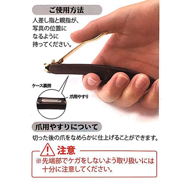 横向きの刃先で切りやすい! 爪が飛び散りにくいケース付き。 |