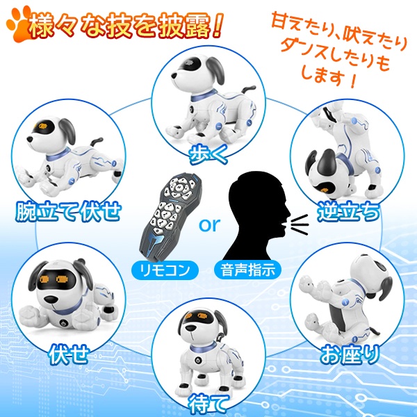送料無料 ! ロボット 犬型 電子ペット 声に反応 ロボットドッグ 音声認識 歌う 踊る かわいい リモコン付き【 電動 ロボット犬 動く おもちゃ 知育玩具 動物 英語 子供 子ども 誕生日 男の子 女の子 クリスマス プレゼント 】送料込 80S◇ 新犬DL