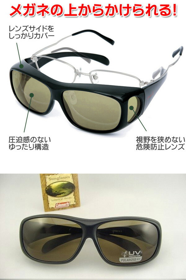 偏光 サングラス Coleman レディース メンズ 日差し 黄砂 砂埃 対策 コールマン 4面型 偏光レンズ オーバーサングラス CO3012-2 紫外線ほぼ100%カット 眼鏡の上から装着OK【 メガネ 釣り アウトドア 花粉対策 おしゃれ 人気 紫外線対策 】 ◎ /60N◇ CO3012:_2