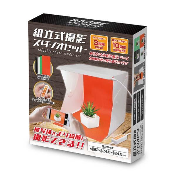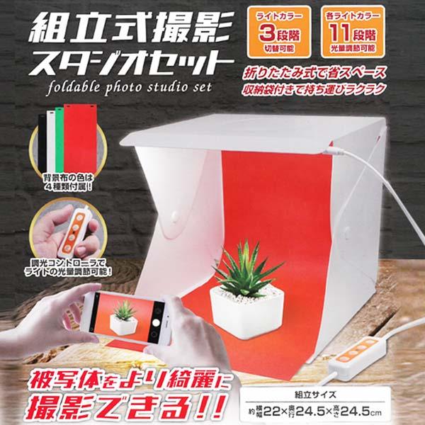 | ライト3色・明るさ調節 背景布4種付き 組立式撮影スタジオセット |