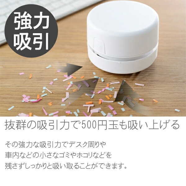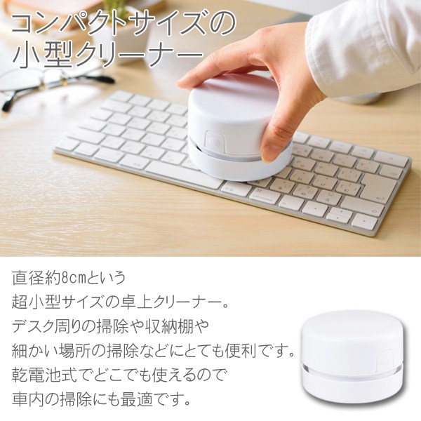 デスク周りの細かいゴミなどしっかり吸収! 乾電池式でどこでも使えて持ち運びもラクラク! | |