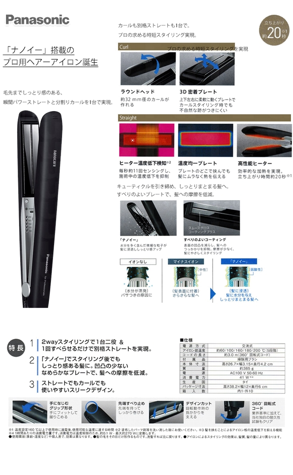 パナソニック ストレートアイロン ナノケア プロモデル Panasonic EH-HS0EK-K ナノイー 業務用 ヘアアイロン 1台二役 ストレート ふんわりカール しっとり サロン専売品 送料無料