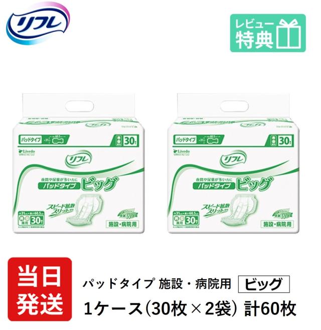 リフレ 大人用 紙 おむつ パッド パッド パッド タイプ ビッグ 30枚×2袋 ケース販売大人用オムツ 紙おむつ おむつ 大人 リフレパッドタイプ ビッグ 病院・施設用 大人用紙おむつ 紙おむつ 大人用 紙パンツ 大人用オムツ おむつ 大人 パッド 尿とりパッド 尿取パッド 介護用