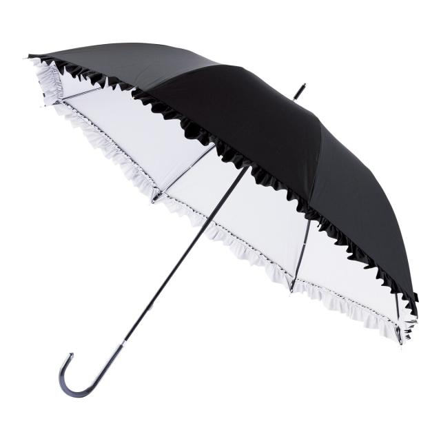 晴雨兼用日傘 長傘 プレーンフリル 1級遮光 遮熱 UV
