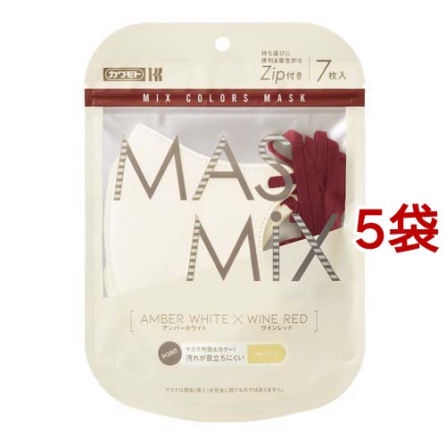 MASMiXマスク アンバーホワイト*ワインレッド(7枚入*5袋セット)[立体マスク]
