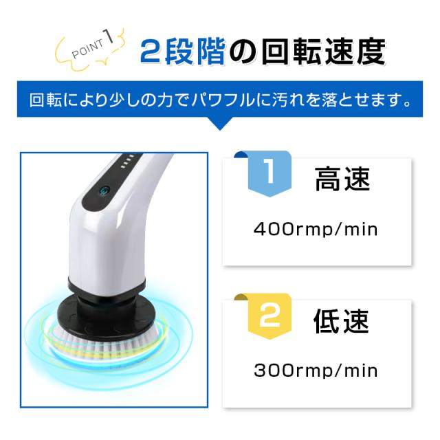 電動掃除ブラシ 電動バスポリッシャー 回転ブラシ 掃除用品 高性能 充電式 コードレス 小型 防水仕様 キッチン掃除用 軽量 コスパ 強力 【PL保険加入済み製品・安心】