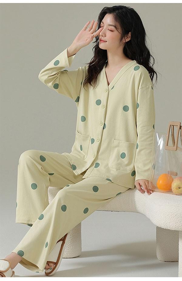ルームウェア レディース パジャマ 水玉柄 かわいい 上下セット 可愛い コットン ルームウェア 長袖 部屋着 大人 体型カバー やわらか 涼しい お洒落 パジャマ 誕生日 ギフト 結婚祝い プレゼント きれいめ bi036zezezr