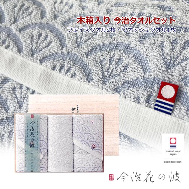 今治タオルギフト セット 【フェイスタオル 2枚 ウオッシュタオル 1枚】サステナブルな 木箱入り 今治花の波【離島・沖縄除く送料無料】 ごあいさつ お返し のし対応 贈答 お祝い 御礼 内祝い 志 お返し 綿100% コットン 洗顔タオル 波模様 縁起柄 和柄 波文様 IM3542